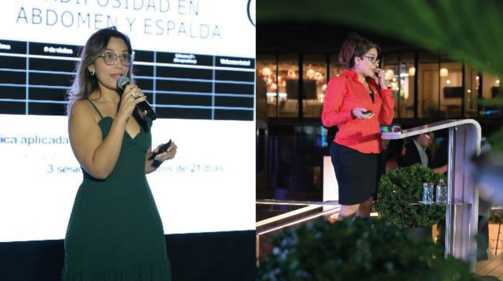 La conducción de la noche estuvo magistralmente liderada por la Dra. Nathy Coveñas, quien asumió el rol de maestra de ceremonia, guiando cada momento con profesionalismo y cercanía. Asimismo, la participación especial de la Dra. Daniela Lara, especialista en dermatología estética y láser, invitada desde México, aportó un enfoque académico y científico clave sobre los procesos biotecnológicos y el impacto de estas tecnologías en la nueva era de la medicina estética.