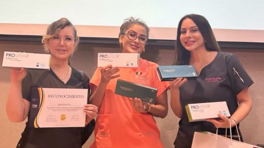Uno de los momentos más destacados fue la intervención de la Dra. Lucero Román, quien resaltó la confianza que le brinda WEP Pharma no solo como distribuidor oficial, sino también por su compromiso con el desarrollo académico y científico de los profesionales de la medicina estética.